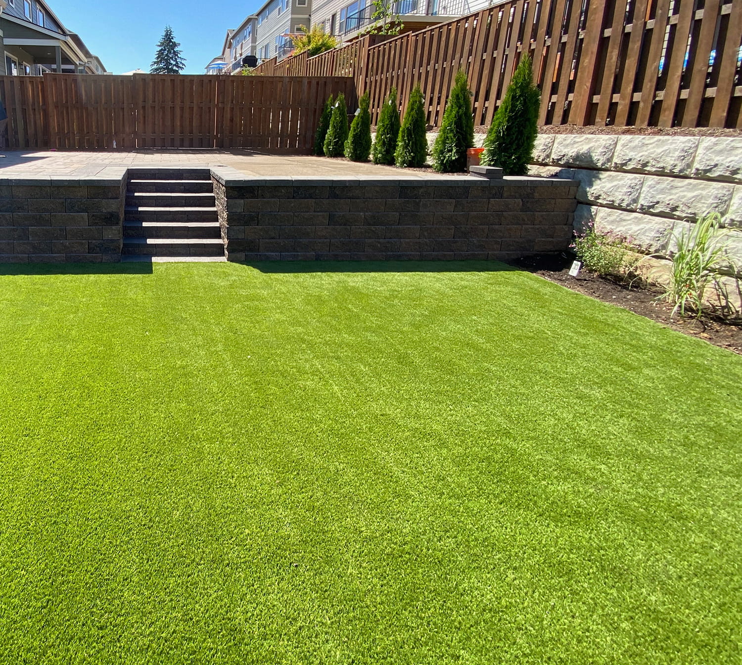 Western Paver Design is Portland’s trusted choice for professional artificial turf installation. We source only commercial-grade turf manufactured in Georgia — built to handle the Pacific Northwest’s wet winters and dry summers while staying green and lush 365 days a year. Say goodbye to mowing, watering, weeding, and mud. Our turf requires zero maintenance, no pesticides, and no irrigation, which means real savings on your water bill and your weekends back. Whether you have kids, pets, or just want a yard you can actually enjoy, WPD delivers a custom installation tailored to your space. With a 5-star reputation across Portland, a 5-year workmanship warranty, and flexible financing options, there’s never been a better time to make the switch. Contact the best turf installers in Portland, Oregon today!